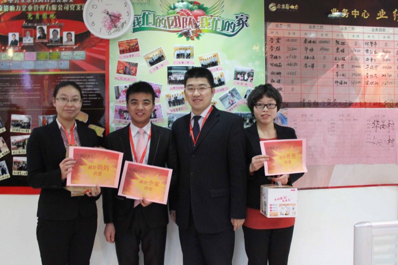 在2013年新春到來之際,感恩媽媽,感恩爸爸,感恩全家。送上濃濃的祝福,獻(xiàn)給他們的愛。業(yè)務(wù)三部—邱端陽,業(yè)務(wù)三部—石仁強(qiáng),業(yè)務(wù)四部—李遠(yuǎn)花,他們用實(shí)際行動(dòng)證明了這一切!